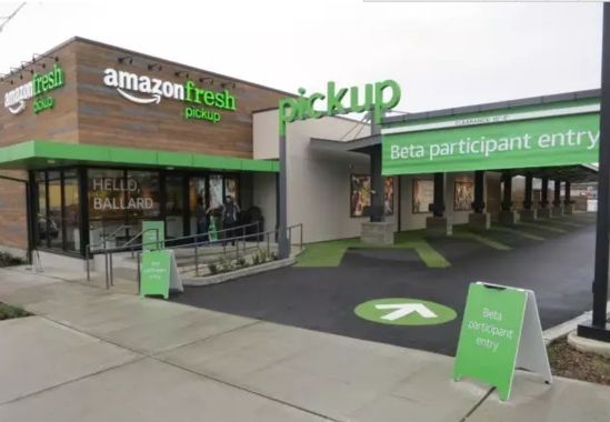 在“學習傳統(tǒng)零售”這方面,亞馬遜在今年3月份內(nèi)測了自己的“生鮮提貨點(Amazon Fresh Pickup)”,整體邏輯類似于傳統(tǒng)店的“開車自提”。